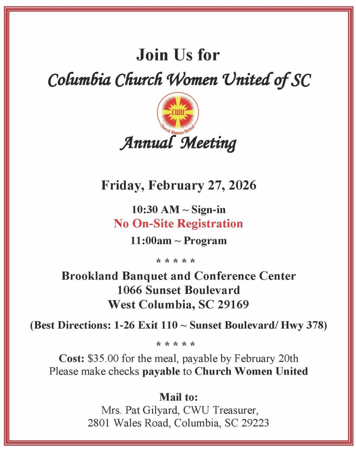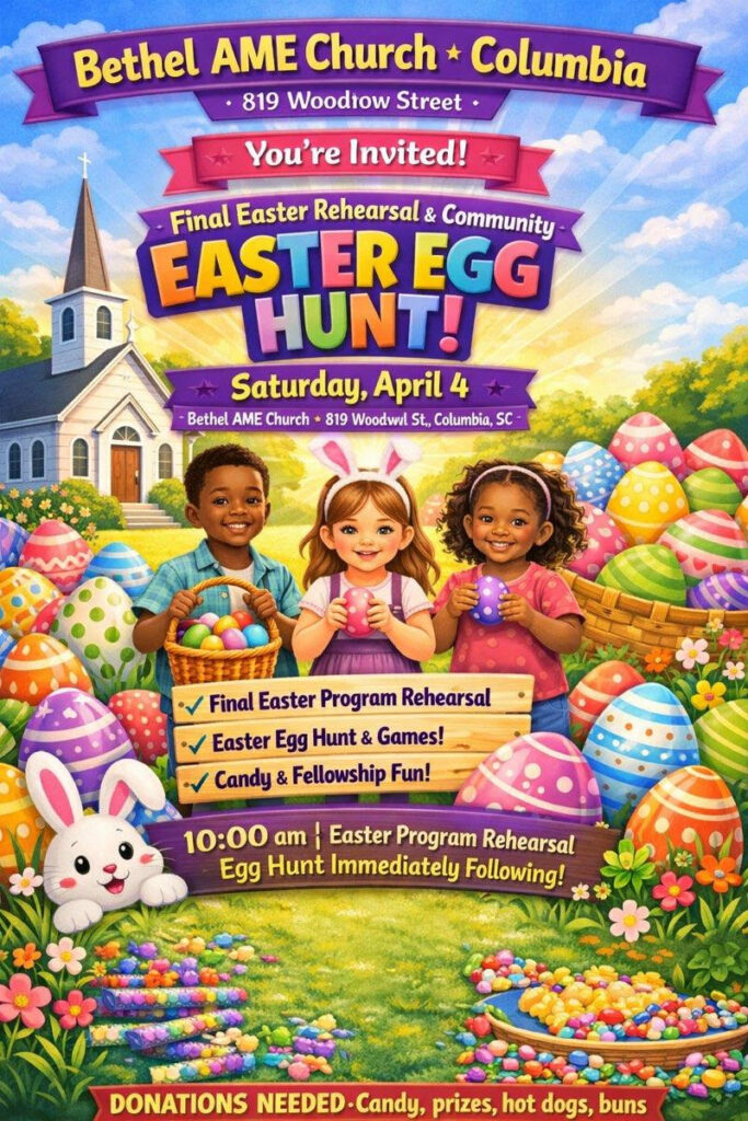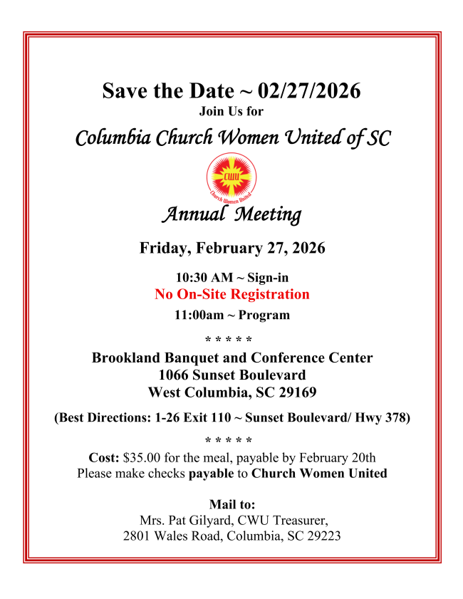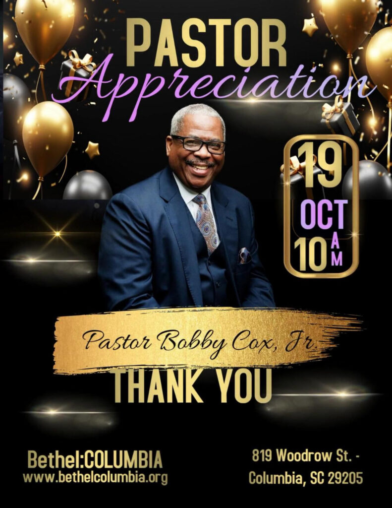 “The Bethel FOOD PANTRY opens on Tuesdays, 11:00AM – 1:00PM at 819 Woodrow Street. Please contact the church for more information at 803-779-0138”